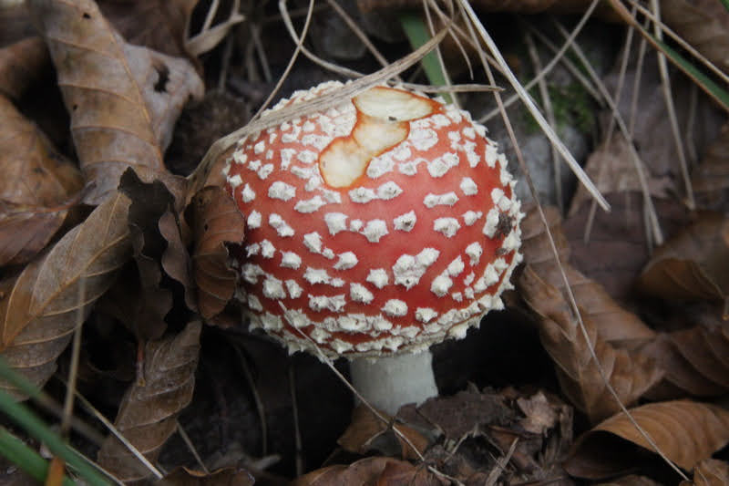 E igualmente la llamativa Amanita muscaria o seta de los cuentos, cuando pierde las escamillas puede confundirse con su homóloga la Amanita caesarea, oronja o gorringo, excelente comestible.